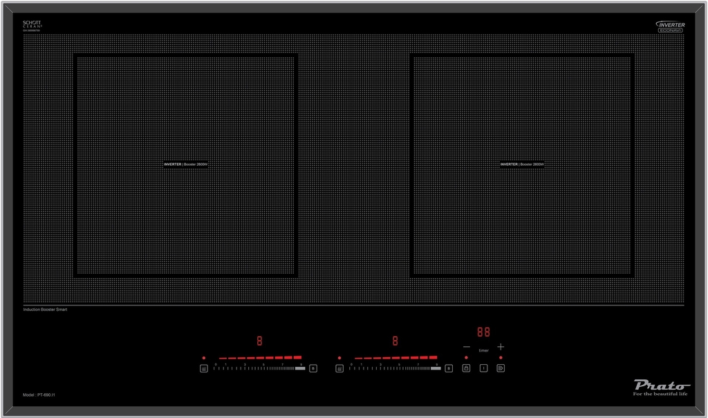 Bếp từ đôi Prato PT-690.I1 chủ động thiết kế hai vùng nấu với phong cách châu Âu, tinh tế và lịch lãm.