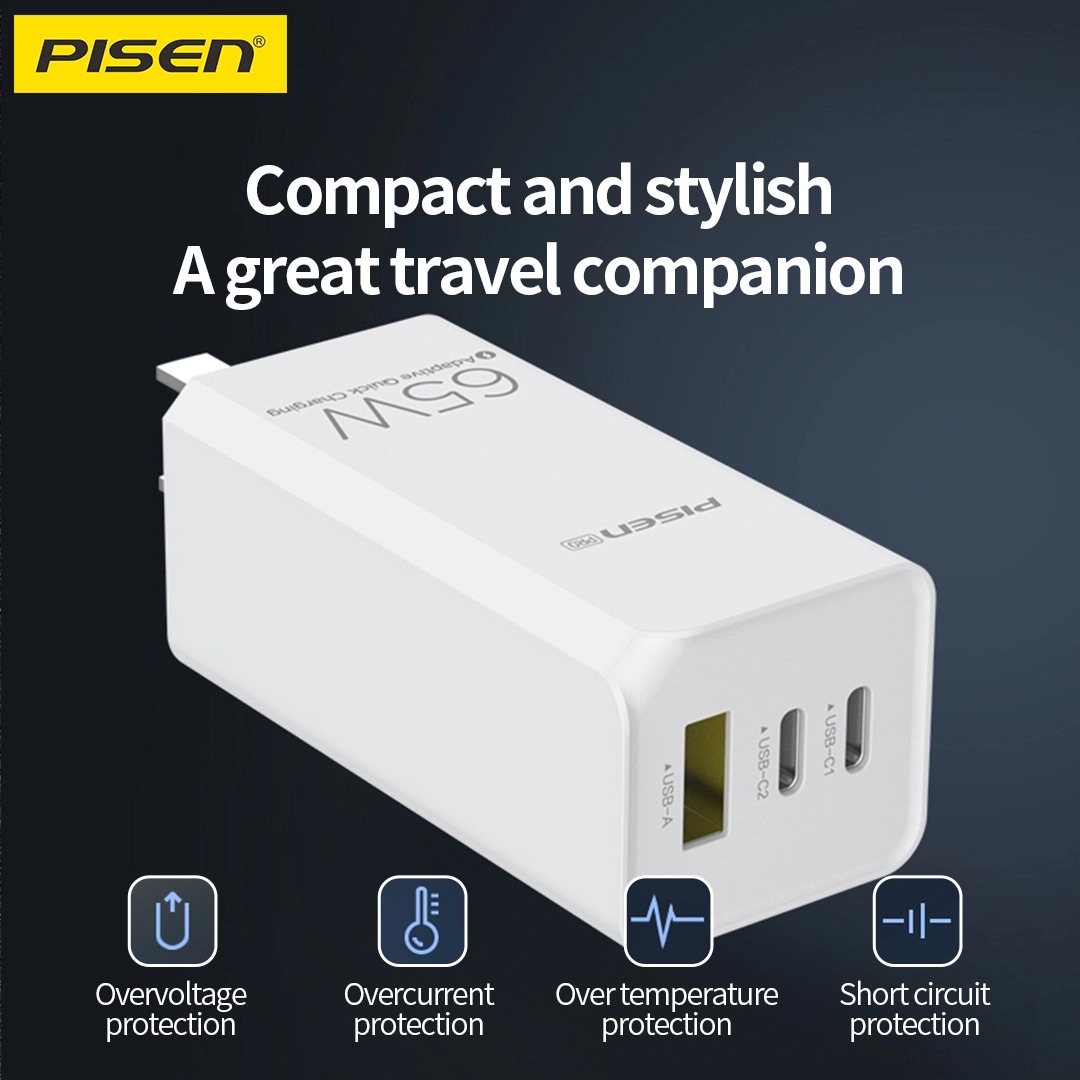💡 PISEN Pro GaN 65W 2C1A là lựa chọn hoàn hảo cho người dùng hiện đại cần một củ sạc đa năng, mạnh mẽ và an toàn – đáp ứng từ smartphone đến laptop nhỏ gọn mà không cần nhiều bộ sạc khác nhau.