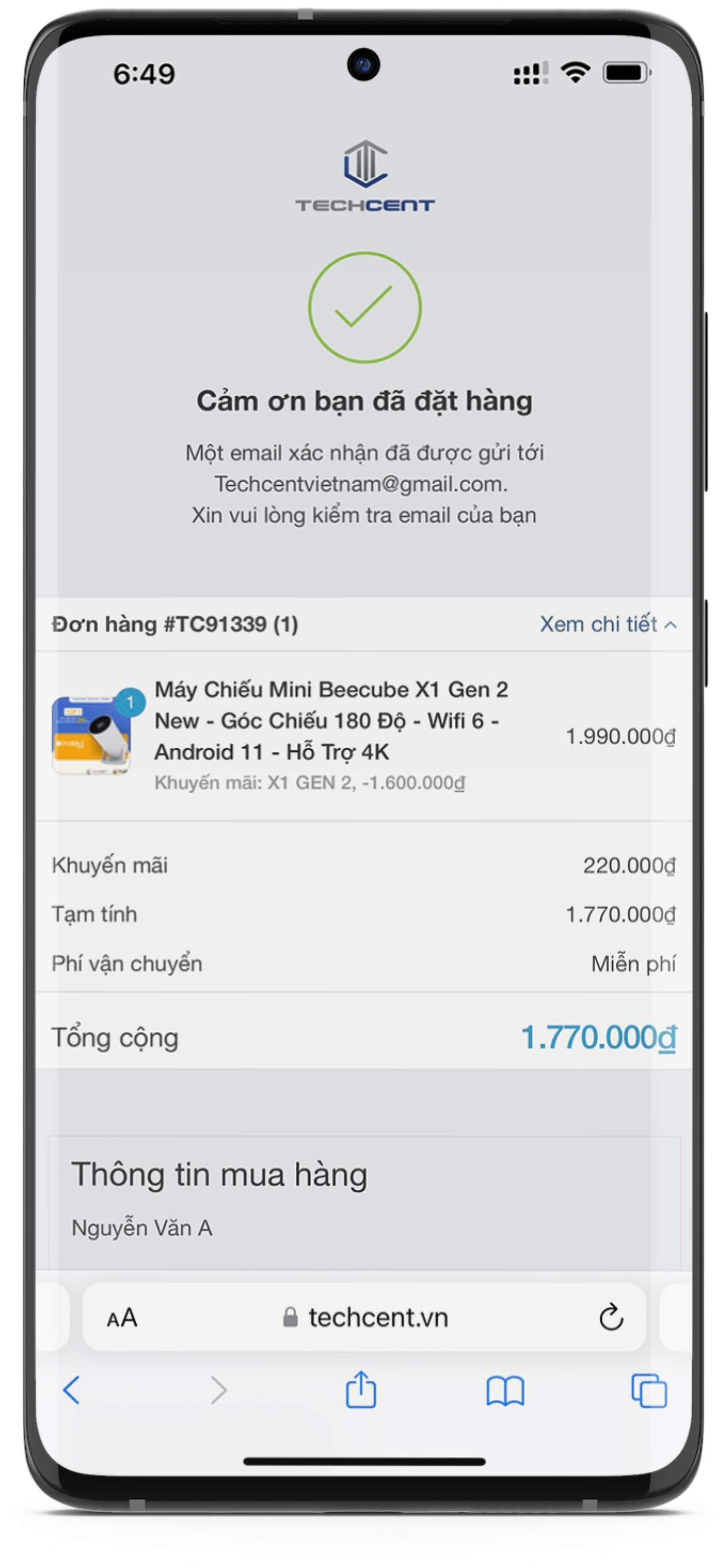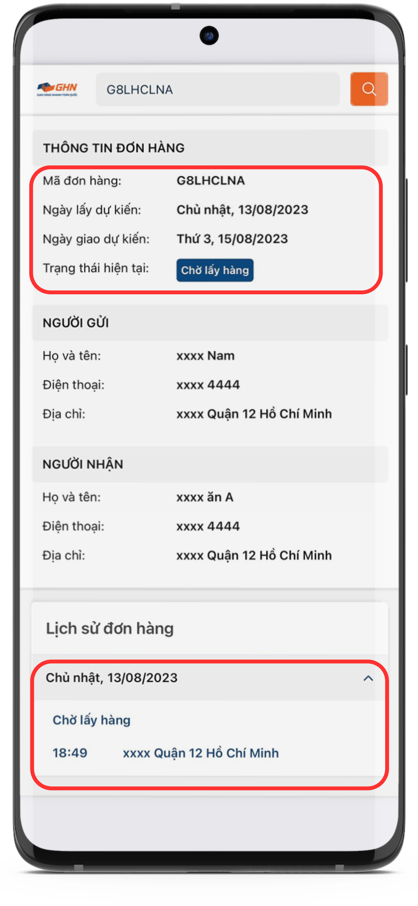 Bước 5: Xem tình trạng hiện tại của đơn hàng.