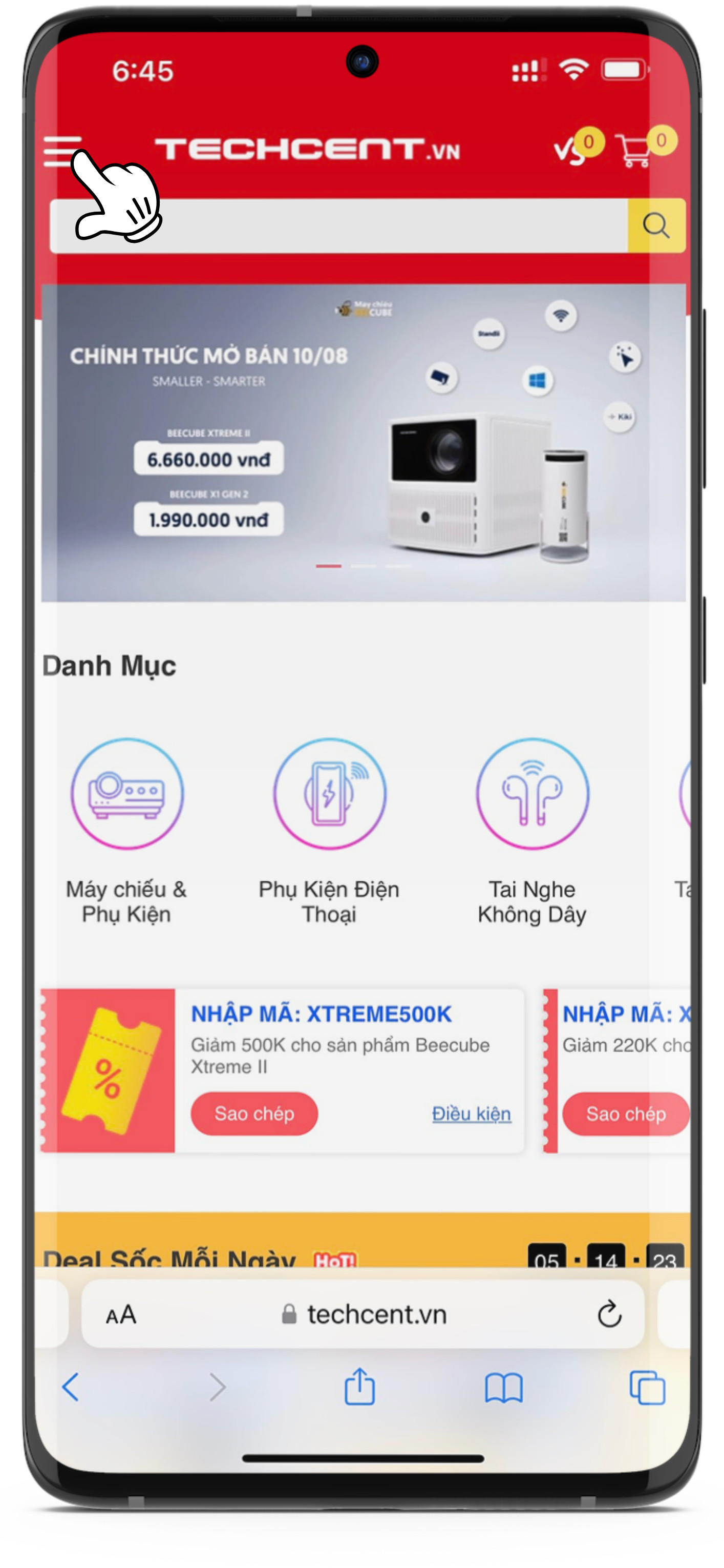 Bước 1: Quý khách về trang chủ của Shop, chọn vào danh mục sản phẩm theo ảnh dưới đây: