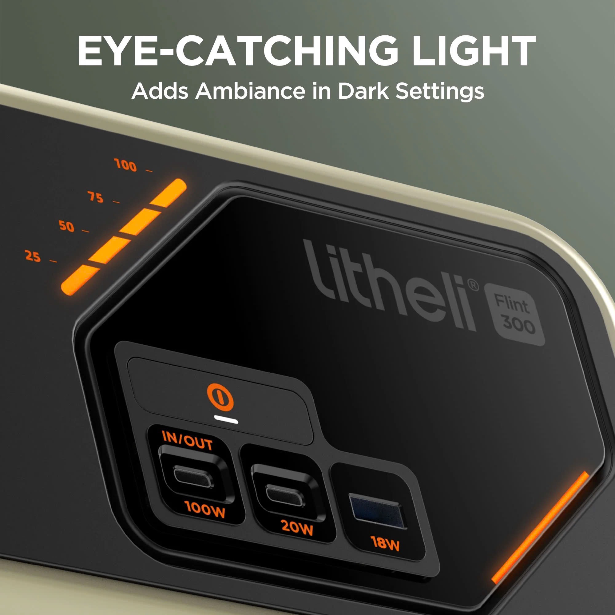- CẤP NGUỒN ĐIỆN CHO 4 THIẾT BỊ: Sạc bốn thiết bị cùng lúc bằng trạm nguồn di động của Litheli, Flint 300SE. Trạm nguồn này có 1*110V AC, 1*100W USB-C Two-Way Port, 1*20W USB-C Port và 1*18W USB-A Port. (LƯU Ý: Tổng công suất tiêu thụ không được vượt quá 300W.)