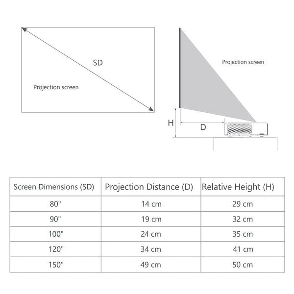Sản phẩm máy chiếu Fengmi Formovie T1 có tỷ lệ chiếu 0,233:1, cho phép nó chiếu 120 với khoảng cách chiếu cực ngắn chỉ 12'. Kích thước chiếu tối đa của nó là 150. Điều tuyệt vời nhất là Fengmi Formovie T1 tạo ra một rạp chiếu phim với kích thước linh hoạt để đáp ứng các nhu cầu khác nhau của bạn.