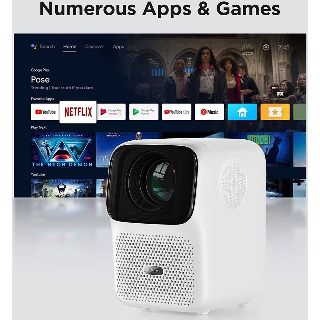 Với kích thước gọn nhẹ, khả năng di động cao máy chiếu Wanbo T4 còn sở hữu khả năng chiếu trên màn hình rộng đến 130 inch, kèm theo khả năng hiển thị chất lượng rõ nét ở độ phân giải 1080P. Bên cạnh đó, máy cũng được trang bị thêm dàn loa kép công suất 3W, chắc chắn sẽ mang tới cho người dùng phút giây giải trí tuyệt vời tại ngôi nhà của mình.