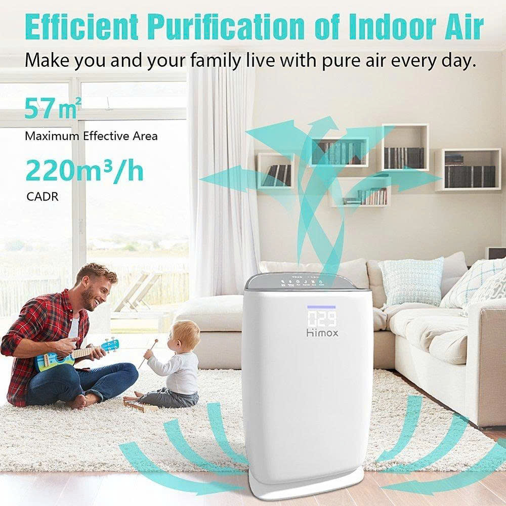 Phạm vi lọc khủng: HIMOX H04 có khả năng lọc hiệu quả cho phòng có diện tích tối đa lên tới 1200 ft2 (khoảng 111 m2). Hiệu suất này rất ấn tượng, lý tưởng cho các không gian mở lớn như phòng khách liền bếp hoặc văn phòng làm việc tập thể.