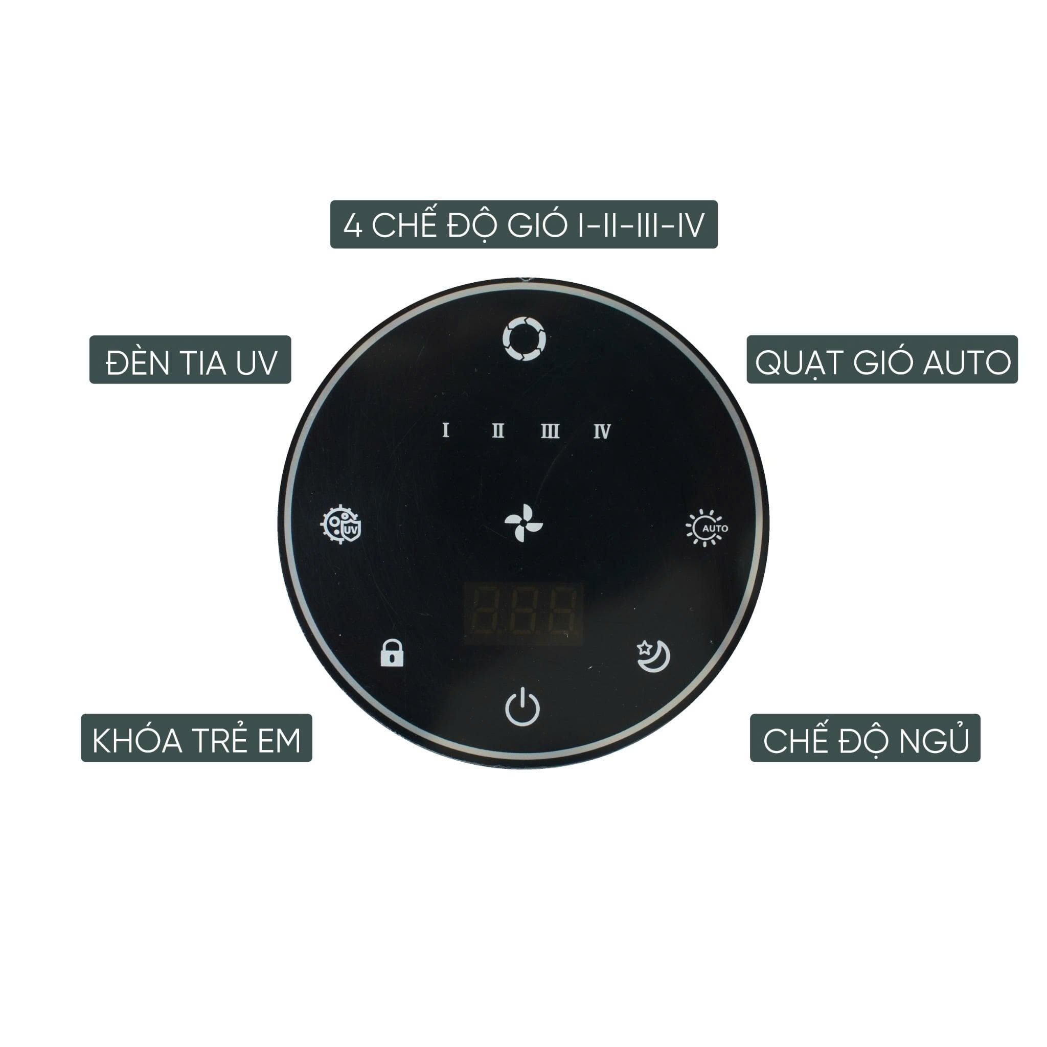 Chế độ quạt 4 mức (I, II, III, IV) và chế độ Auto: Điều chỉnh tốc độ quạt phù hợp với nhu cầu sử dụng.