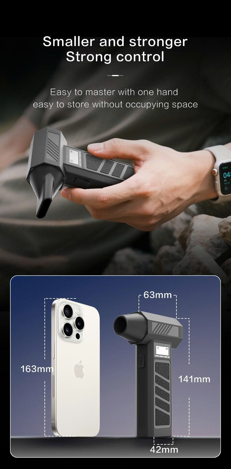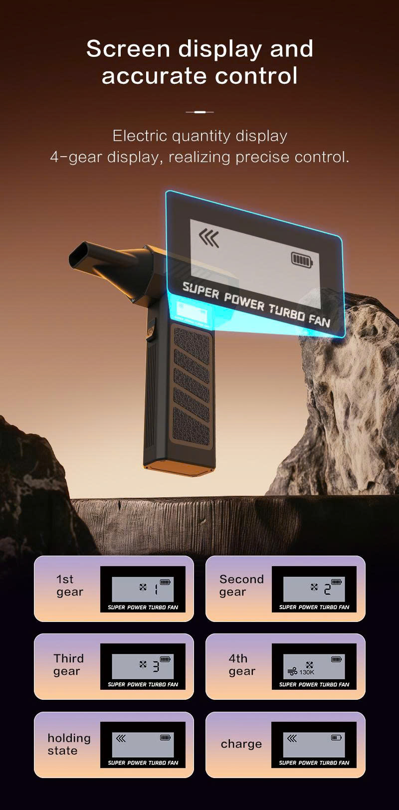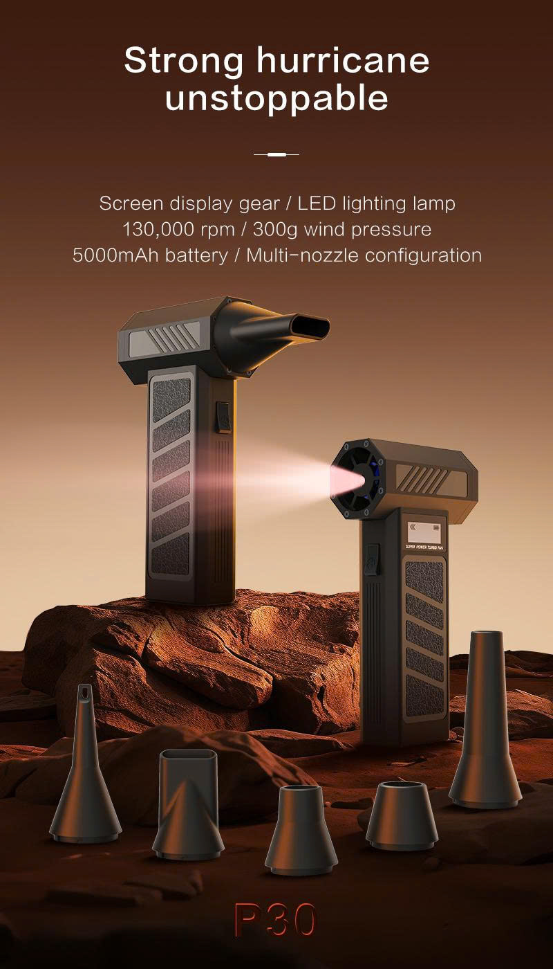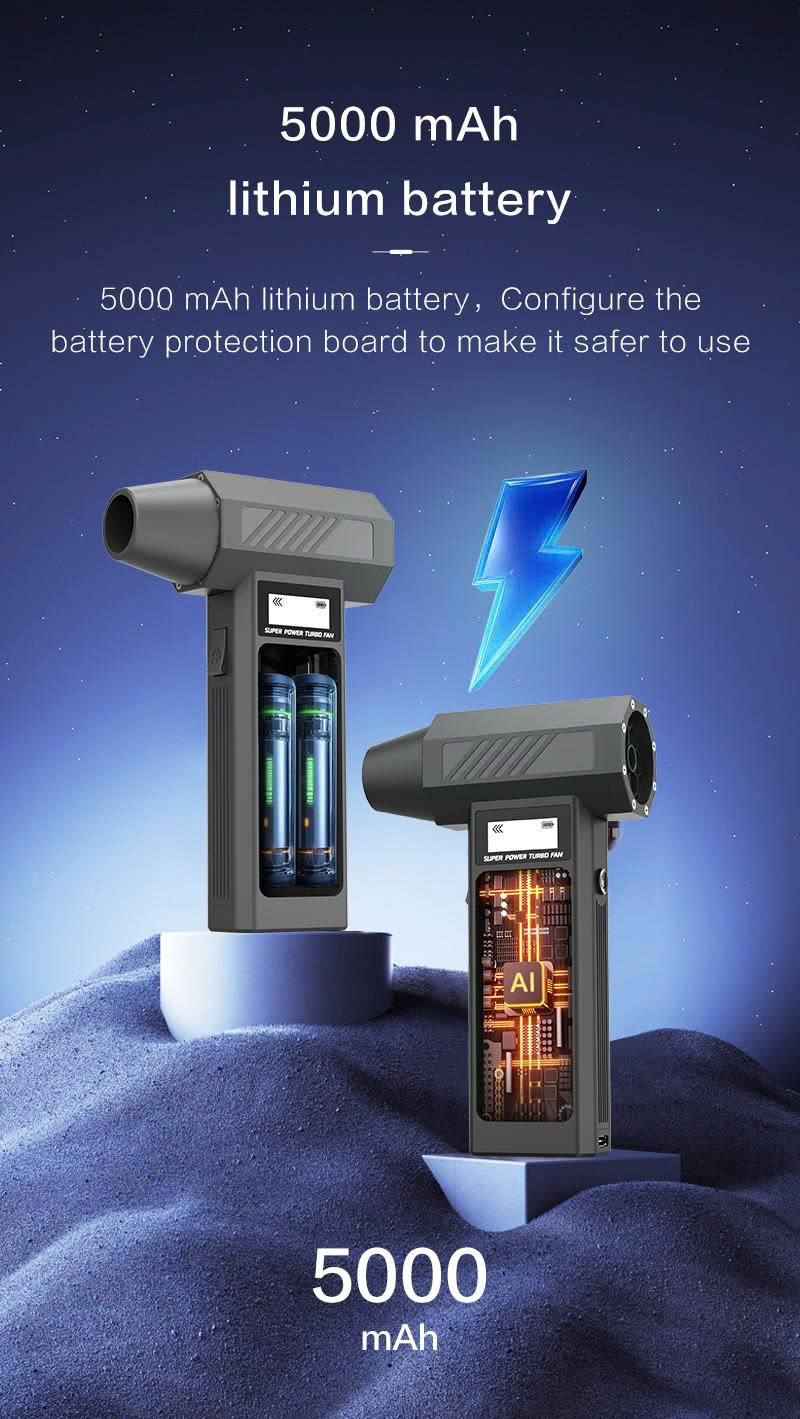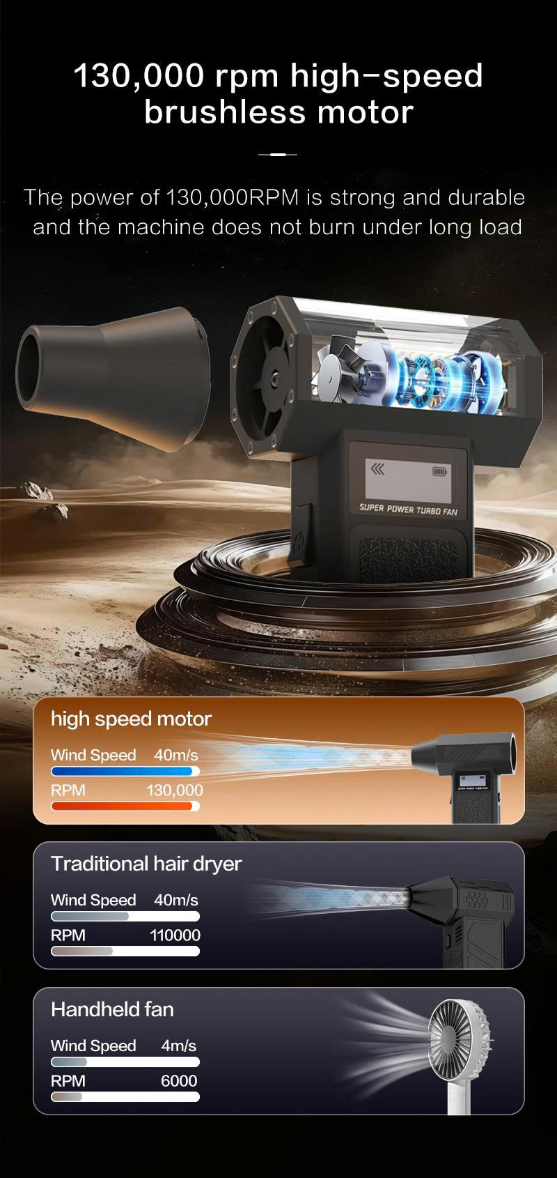 Tự hào có quạt turbo, quạt này có hiệu quả loại bỏ bụi bẩn ẩn trong các khe hở của bàn phím hoặc bất kỳ thiết bị điện tử nào, giúp quạt cực kỳ tiện dụng khi lau bụi ở nhà, văn phòng hoặc ô tô.