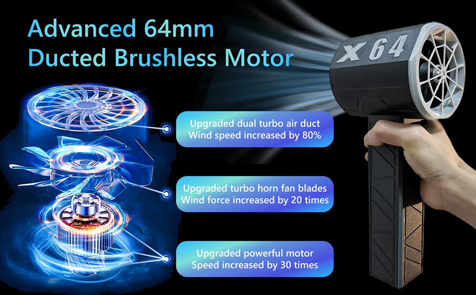 1. Thiết kế mang tính cách mạng: Quạt turbo bạo lực của chúng tôi có cấu trúc mới, hợp lý với hiệu suất mạnh mẽ. Nó sử dụng động cơ không chổi than 64mm tốc độ cao với cụm quạt 12 cánh, mang lại khả năng làm sạch bụi đáng chú ý và lực đẩy lên tới 1400 gram.