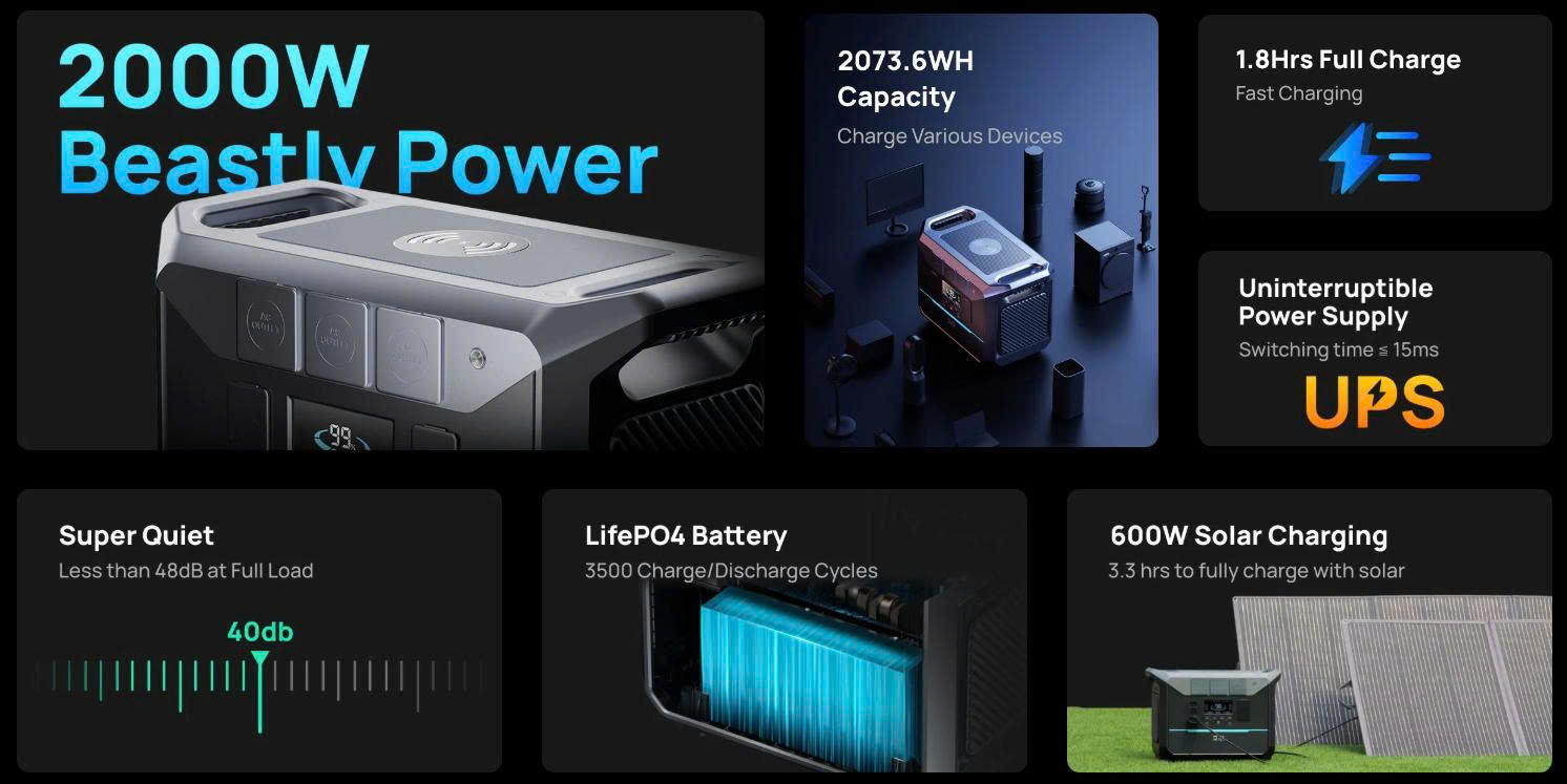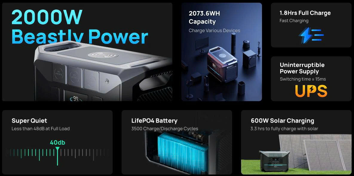 Trạm điện di động DaranEner NEO2000 - 2073,6Wh, Công suất 2000W, Sạc đầy 1,8 giờ Aliexpress bán hơn 20TR