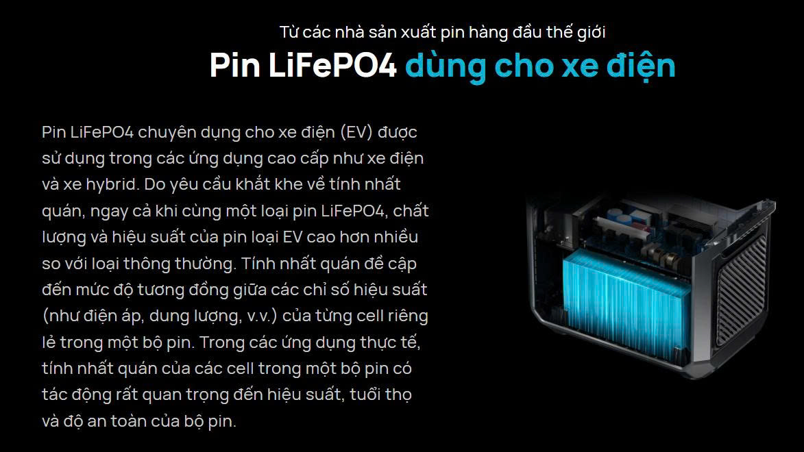 Pin LPF chất lượng cao (LiFePO4) có vòng đời dài hơn. 3500 chu kỳ lên đến 80% công suất, 6500 chu kỳ lên đến 50% công suất.