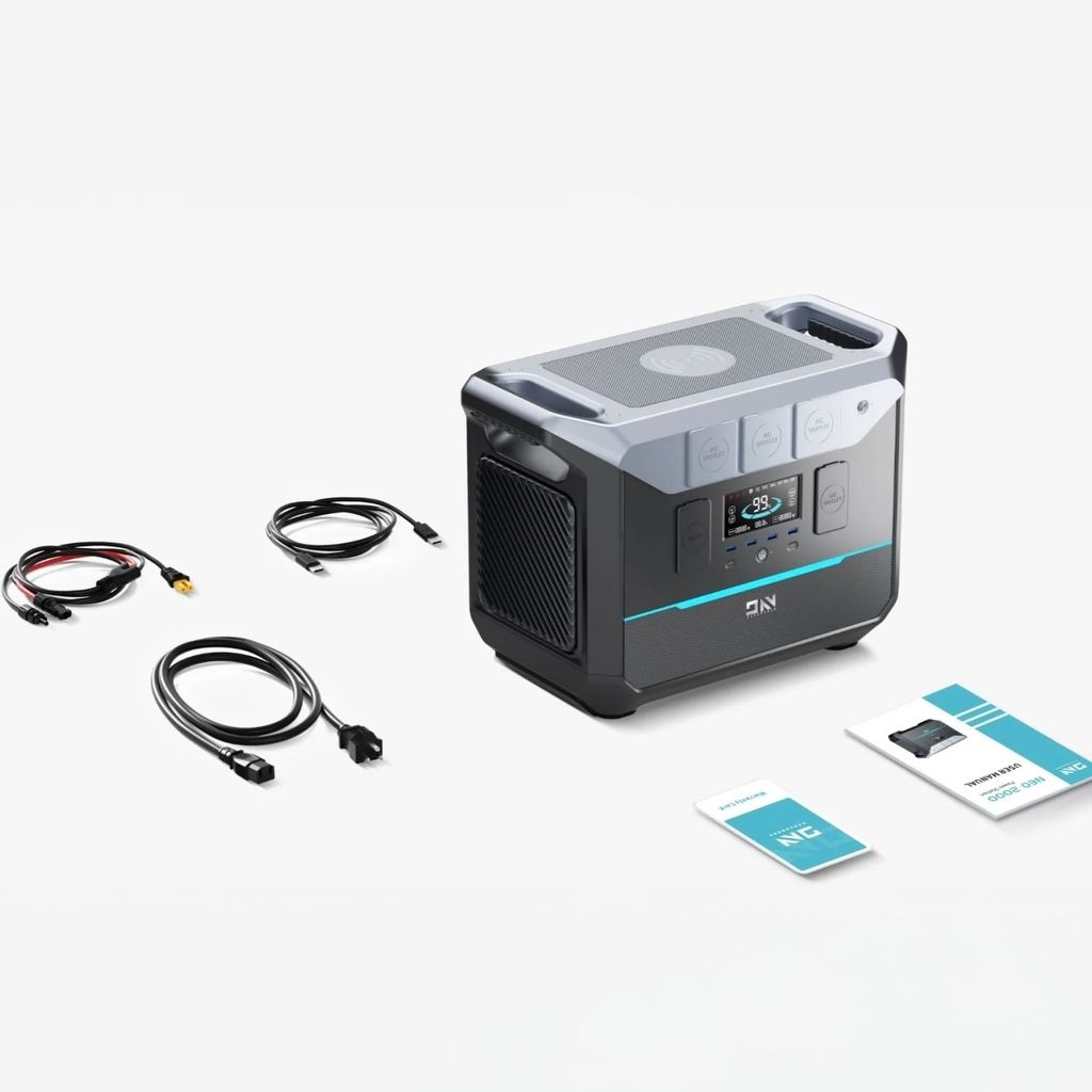 Bao gồm: trạm điện, cáp sạc AC, cáp MC4→XT60, USB-C, hướng dẫn & thẻ bảo hành. |
