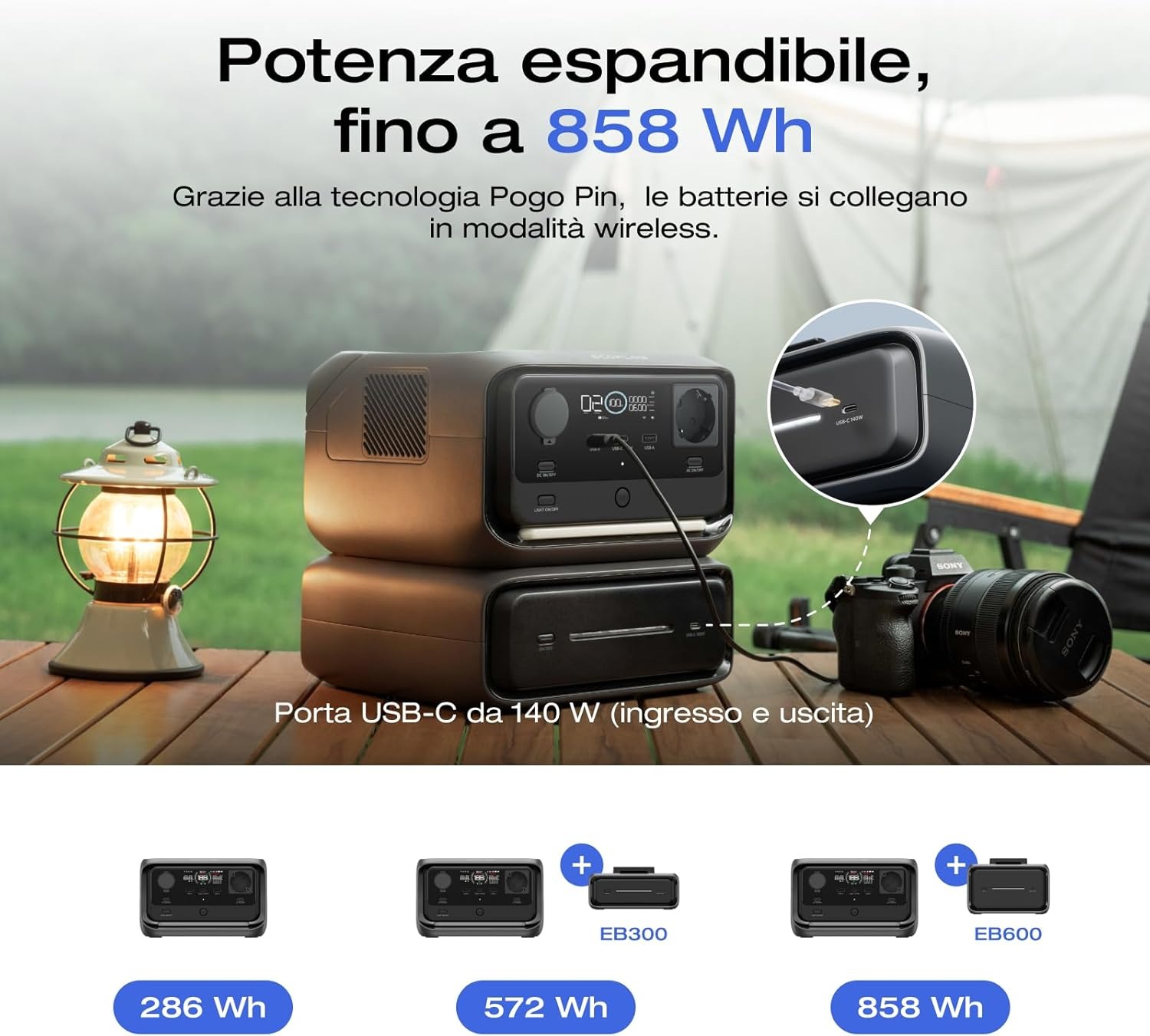 | Dung lượng pin | 286Wh (mở rộng tối đa 858Wh với EB300 hoặc EB600) |