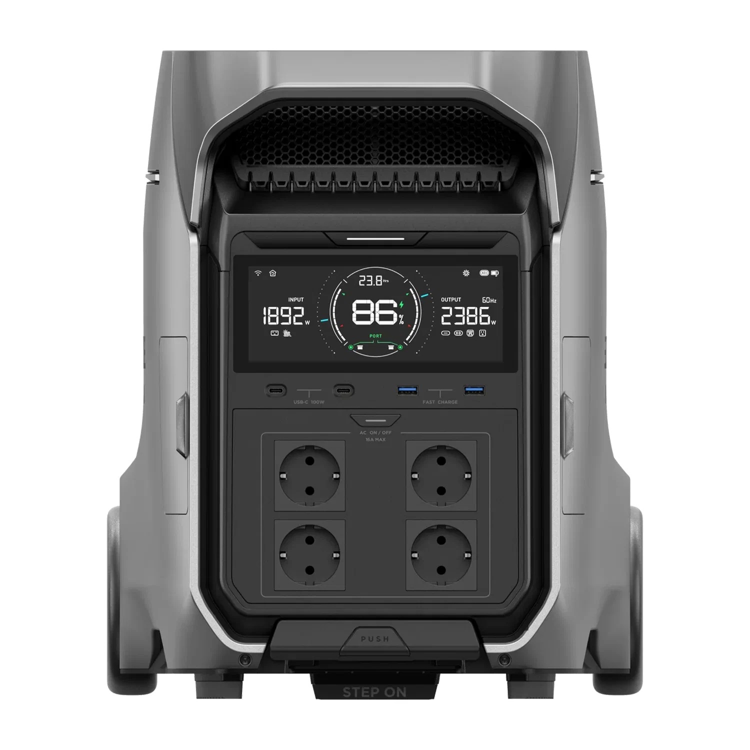 Nhờ công nghệ X-Stream, DELTA 3 Pro có khả năng sạc từ 0-80% chỉ trong 50 phút và đầy 100% trong khoảng 1.5 giờ khi sử dụng nguồn điện AC. Tốc độ này nhanh hơn đáng kể so với các trạm năng lượng thông thường, giúp tiết kiệm thời gian sạc và sẵn sàng cho mọi tình huống.